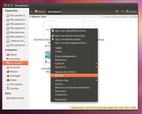 Se però vogliamo eliminare definitamente alcuni file senza dover per forza passare da cestino Nautilus (e non solo) offre la possibilità di aggiungere al menu contestuale la possibilità di rimuovere definitivamente un file con un semplice click.