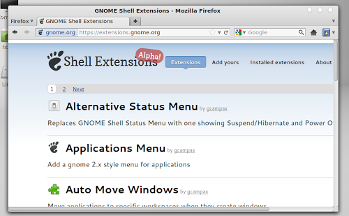 Più volte abbiamo indicato che il nuovo Gnome Shell è stato concentrato sulla possibilità di estendere le funzionalità attraverso le estensioni dedicate, difatti in questi mesi abbiamo visto il nascere di moltissime estensioni . Ma con l’arrivo di Gnome 3.2 è stata introdotto il supporto per installare e gestire le estensioni direttamente online attraverso il nostro Browser il tutto come gestire ad esempio i plugin per Chrome o Firefox.