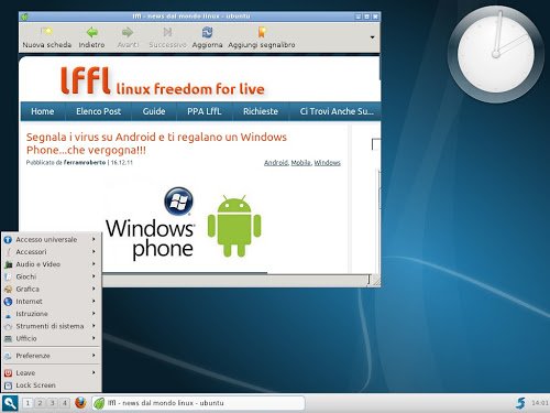 Particolarità di Razor–Qt è l’orologio analogico in stile plasmoide di KDE in alto a destra il quale però non è possibile personalizzare o spostare.