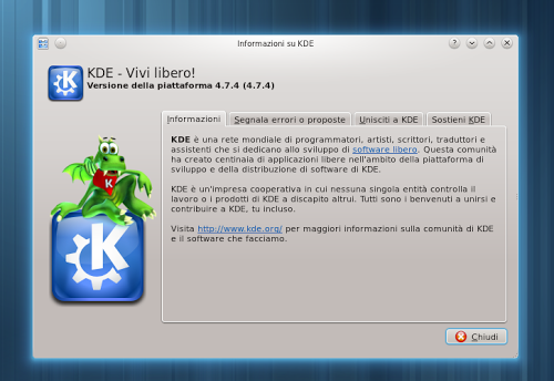KDE 4.7.4 non aggiunge alcuna importante novità ma corregge alcuni problemi su kdelibs, kdeworkspace, KGpg e kdepim-runtime inoltre corregge alcuni problemi su Okular sopratutto è stato corretto il problema che mandava in crash l’applicazione al comando Salva in… e corretta l’integrazione con alcuni font.