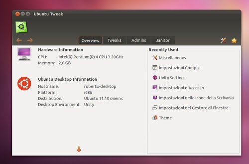 Possiamo installare il nuovo Ubuntu Tweak 0.6 su Ubuntu 11.10, Linux Mint 12 e derivate scaricando il pacchetto da questa pagina oppure attraverso i PPA dedicati semplicemente digitando: