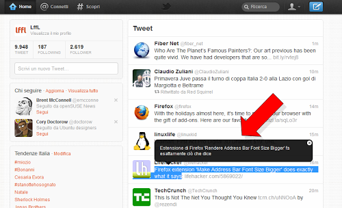 Dopo alcuni secondi si aprirà una piccola finestra con la nostra traduzione. Permette anche di tradurre un testo direttamente dal pulsante affianco alla barra degli url (che possiamo comunque nascondere) basta un click su di esso e si aprirà una finestra sulla quale dovremo inserire il testo da tradurre e dopo alcuni secondi avremo la nostra traduzione effettuata.