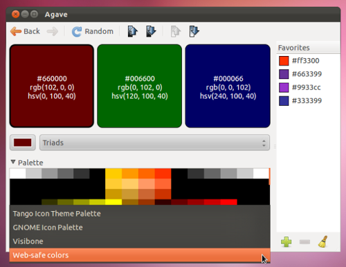Ma per fortuna sia per Linux che in rete esistono applicazioni dedicare le quali ci permettono di scegliere e combinare i colori con molta facilità una di queste applicazioni è Agave.