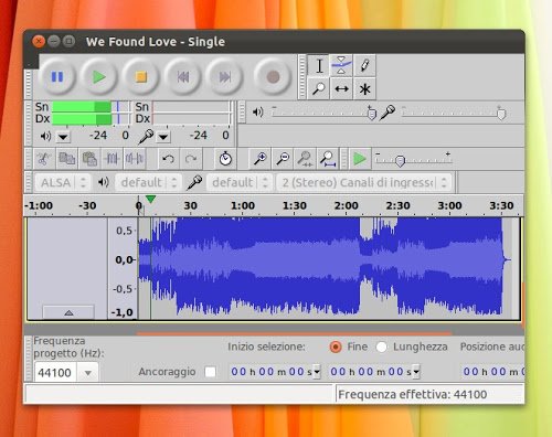 Ricordo che la versione 1.3.x di Audacity viene indicata come release in fase di sviluppo (Beta) anche se comunque stabilissima (la stessa versione è presente anche su Ubuntu 12.04 Precise)