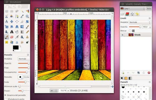 GIMP con l'integrazione di nuovi pannelli e strumenti