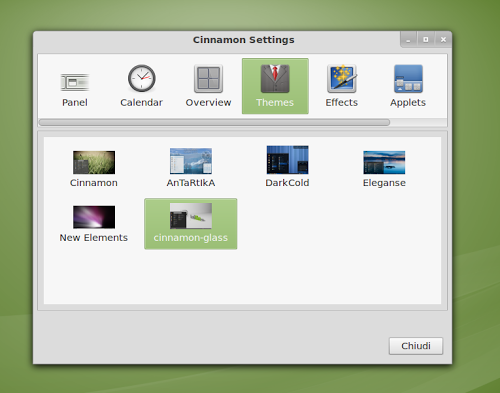Una volta copiata la cartella basta avviare Cinnamon Settings e nella sezione Themes scegliere il nuovo tema.
