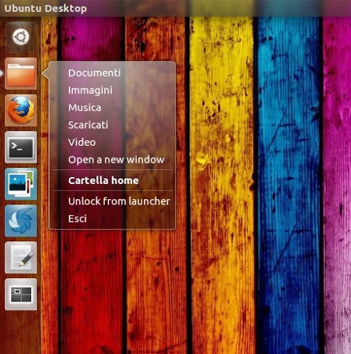 Basta cliccare con il tasto destro del mouse sul collegamento nel Launcher per avviare le principali cartelle presente nella nostra home.