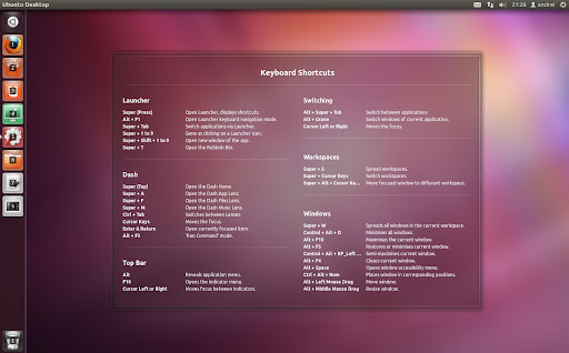 Per velocizzare alcune operazioni nel nostro Unity sono impostate di default alcune scorciatoie da tastiera. Dalla prossima Ubuntu 12.04 Precise oltre l’introduzione di nuove potremo anche impararle facilmente grazie ad una semplice schermata che ci visualizzerà le principali combinazioni di tasti proprio come avevamo già segnalato in questo articolo.
