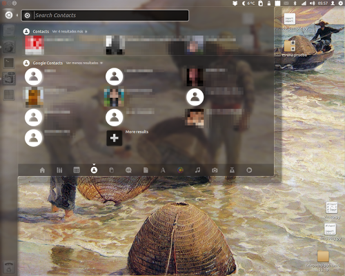 Unity Lens Scope Contacts permette quindi di effettuare ricerche mirate sui nostri contatti direttamente dal Dash una volta individuati possiamo con click avviare l’applicazione dedicata oppure se presenti in Google avviare il nostro Browser alla sezione dedicata.