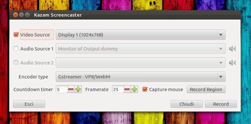 Il nuovo Kazam 1.0 aggiunge il supporto per 2 canali audio con rispettivi controlli del volume, aggiunge la possibilità di personalizzare lo spazio del desktop sul quale effettuare la registrazione con essa anche la finestra del countdown. Kazam Screencaster non si basa più su FFMpeg ma Gstreamer, novità anche nei formati di registrazione ora finalmente possiamo salvare i video in Mkv o WebM e di terminare o mettere in pausa la registrazione con il mouse.