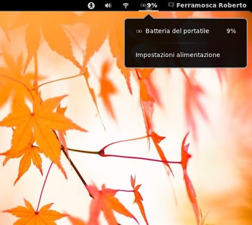 Di default Gnome Shell e Unity permettono di visualizzare il tempo rimanente prima che si scarichi completamente la batteria, purtroppo non possiamo conoscere la percentuale di carica della nostra batteria se non utilizzando applicazioni dedicate.