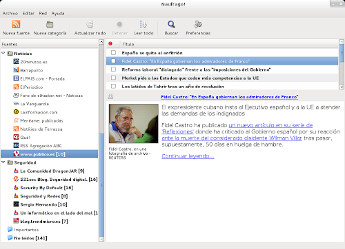 Naufrago! 0.4 migliora l’interfaccia utente portandone alcune ritocchi, migliorata la gestione per nascondere le news già lette, migliorata anche l’integrazione con l’elenco di feed in formato OPML. Corretta anche la notifica di nuova news su Gnome 3, aggiunta la nuova opzione nelle preferenze per gestire i proxy, aggiunta l’integrazione delle favicons e aggiunta la funzionalità per minimizzare l’applicazione nel tray quando clicchiamo su minimizza.