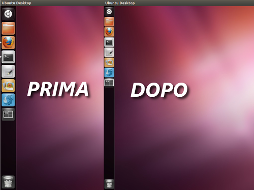 Ora riavviamo o terminiamo la sessione ed al riavvio avremo il Lancher di Unity 2D dalle dimensioni inferiori a quello di default.