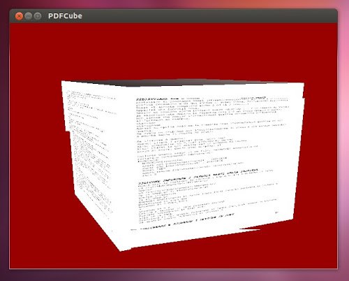 PDF Cube è un semplice reader di PDF che aggiunge però la possibilità di aggiungere alcuni effetti 3D realizzati grazie alle API OpenGL. Potremo quindi leggere i nostri documenti in una maniera tutta nuova e molto carina: possiamo ad esempio cambiare le pagine con il classico effetto cubo di Compiz, zoomare 5 aree predefinite di qualsiasi pagina della presentazione con l’effetto ingrandimento morbido.