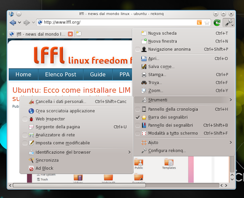 Principale novità del nuovo Rekonq Web Browser 0.9.0 è il nuovo supporto per le applicazioni web che ci permetterà di creare un’applicazione da qualsiasi scheda e avviarla senza utilizzare il Browser.