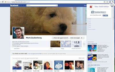 Se vogliamo comunque rimuovere la TimeLine di Facebook e ritornare al precedente layout grafico del nostro profilo su Facebook, possiamo utilizzare un semplice plugin per Google Chrome, Facebook e Internet Explorer denominato Timeline Remove.