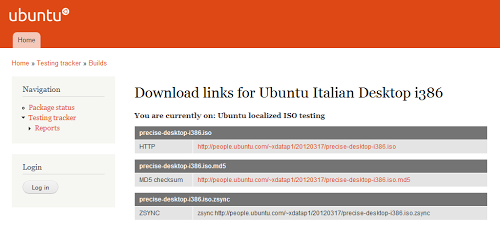 In questa pagina troverete maggiori informazioni sul Testcase per il CD Italiano di Ubuntu 12.04 in questa potete invece potete scaricare la ISO testing 32bit in questa la 64bit. (grazie a Dario).