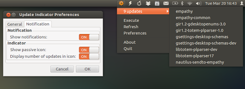 La nuova versione di Update Manager Indicator aggiunge il supporto per GTK3 e l’opzione per visualizzare il numero di aggiornamenti, aggiunta una nuova icona e una nuova funzionalità opzionale per l’aggiornamento in background (fino ad ora, è possibile utilizzare solo l’Update Manager).