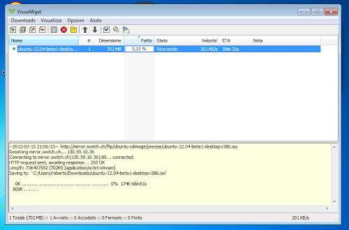 VisualWget è un download manager il quale possiamo utilizzare Wget su Windows attraverso una semplice GUI inoltre il software aggiunge interessanti funzionalità presenti anche in alcuni software a pagamento. Supporta i protocolli HTTP, HTTPS e FTP, possiamo avviare, arrestare o mettere in pausa ogni singolo download, possiamo impostare la priorità dei download, aggiungere automaticamente i link copiati negli appunti, cambiarne l’user agent e molto altro ancora.