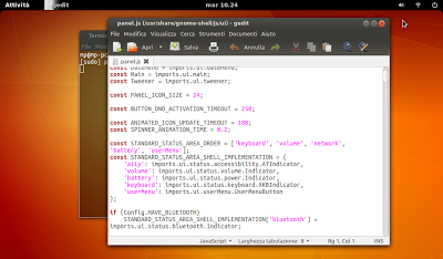 Su Gnome Shell grazie alle numerose Extensions, abbiamo la possibilità di personalizzare a nostro piacimento il pannello superiore; purtroppo ad ogni nuova release di Gnome le estensioni della precedente versione non funzionano più e dobbiamo aspettare che vengano pubblicate le Extensions aggiornate. Ad esempio, le estensioni di Gnome 3.0 non funzionano sulla 3.2, ed analogamente quelle della 3.2 non funzionano sull’attuale 3.4. Anche se nel momento in cui scrivo le più importanti sono state adattate anche per l’ultima versione di Gnome Shell, possiamo evitare ad esempio di installarne qualcuna. Vediamo come eliminare le icone di “Accessibilità” e “Bluetooth” dal pannello modificando il file di configurazione “panel.js”: