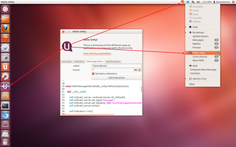 Abbiamo discusso in questo articolo del tool Hello Unity, che ci permette di integrare con molta facilità le applicazioni sul launcher di Unity, ma si è già evoluto alla versione 2.0. Adesso viene indicato che in quest’ottimo strumento per imparare l’integrazione delle nostre applicazioni su Unity in maniera rapida e soprattutto semplice, sono stati inserite due nuove sezioni: il menu dei messaggi e delle notifiche.