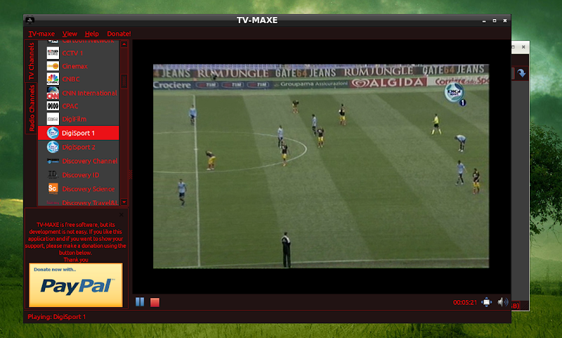 Molto utilizzato per seguire eventi sportivi non disponibili in chiaro in Italia, TV Maxe permette di avere un elenco TV costantemente aggiornato, oppure di aggiungere nuovi canali aggiungendo i vari url presenti in rete.