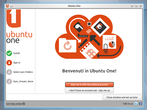 Al termine dell’installazione, basta andare nelle impostazioni di sistema della nostra distribuzione e troveremo Ubuntu One, basta un click sull’icona per avviare il client.