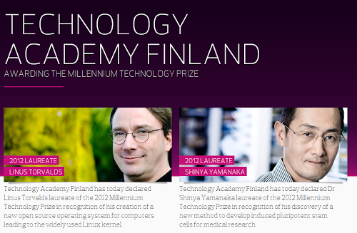 Il patron del kernel Linux Linus Torvalds ha vinto insieme a Shinya Yamanaka il premio Millennium Technology Prize 2012, un importantissimo concorso che è riservato a quelle conquiste tecnologiche attraverso le quali si migliorano la qualità della vita delle persone, basandosi sui valori umani e incoraggiando il progresso economico sostenibile.