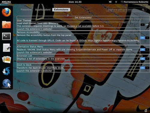 Come ben sappiamo, Gnome Shell permette di aggiungere nuove funzionalità e personalizzazioni all’ambiente desktop tramite estensioni dedicate. Grazie al servizio online, possiamo installare nuove estensioni per Gnome Shell direttamente dal nostro browser; il tutto semplicemente recandoci al portale di Gnome Extensions e cliccando su On e confermando l’installazione delle estensioni.