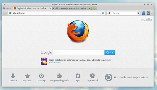 Al primo avvio noteremo la nuova Home Page completamente ridisegnata la quale, oltre ad accedere alla ricerca su Google, ci permetterà un facile accesso a segnalibri, cronologia, impostazioni, add-ons, download e preferenze di Sync.
