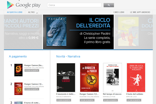 Google nei mesi scorsi ha trovato un accordo con i principali editori Italiani come: Rizzoli, Mondadori, Feltrinelli, Einaudi; offrendo un vasto catalogo di ebook a partire da 0.49 Euro.