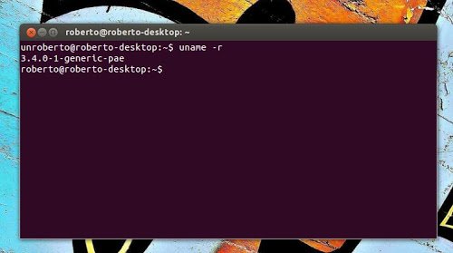 Al riavvio avremo il nuovo Kernel Linux 3.4.0, per verificarlo basta digitare da terminale uname -r come da immagine in alto.
