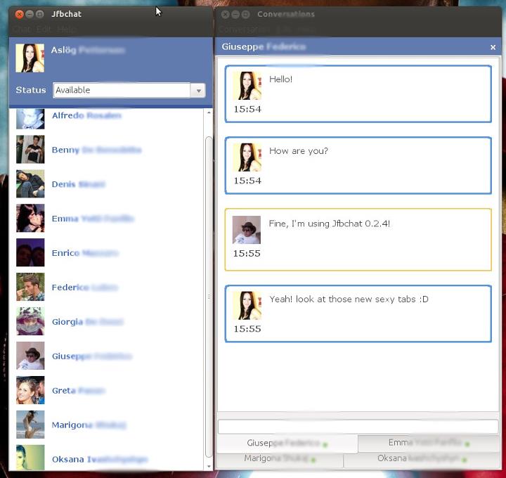 La nuova JFBChat 0.2.4 porta con sé alcuni miglioramenti e correzioni, rendendo ancora più rapido l’accesso alla chat; inoltre l’interfaccia grafica è stata ritoccata ed ora permette anche di organizzare le discussioni per ogni scheda.