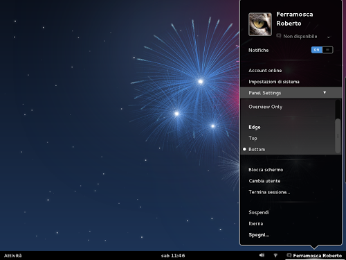 Panel Settings supporta Gnome 3.4 ed una volta installato, troveremo una nuova sezione nel menu utente: basta un click su Panel Settings per accedere alle varie preferenze.