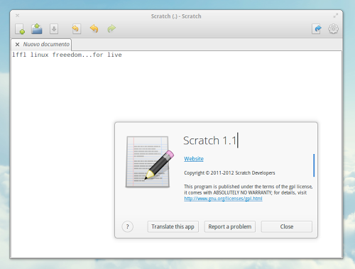 Scratch è il nuovo editor di testo che troveremo di default sulla prossima elementary OS 0.2 Luna, scritto in Vala e GTK+ 3, è simile ad altri editor di testo come Gedit, ma aggiunge ulteriori caratteristiche user-friendly.