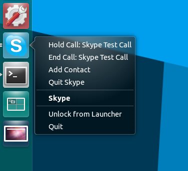 La nuova quicklist di Skype-Wrapper ci permette di effettuare il test di chiamata di Skype, aggiungere un nuovo contatto oppure chiudere Skype. In caso di nuovi messaggi, troveremo nel collegamento nel Launcher il numero dei messaggi da leggere, con la possibilità di accedere alla lettura con un semplice click.