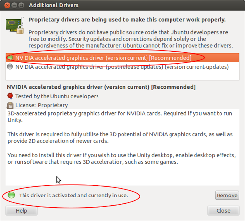 Al riavvio, dovremmo avere i driver proprietari attivi nel nostro Ubuntu 12.04.