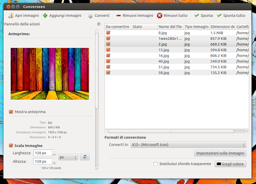 Nel nuovo Converseen 0.5 troviamo l’algoritmo di conversione velocizzato, ed inoltre è stata introdotta la possibilità di selezionare il colore in sostituzione della trasparenza.