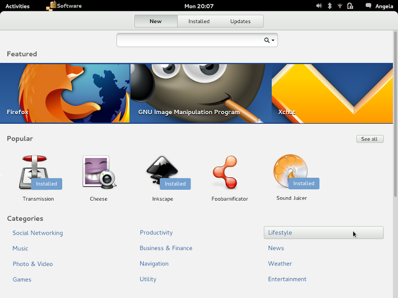 Gnome App Center permette all’utente di effettuare ricerche e l’installazione di applicazioni con molta facilità, offrendo elenchi di applicazioni suddivise per categorie ed offrendo la possibilità di effettuare ricerche mirate attraverso una barra di ricerca. Il progetto prevede anche un update manager con il quale potremo aggiornare i nostri pacchetti, applicazioni ed anche l’intero ambiente desktop, oltre ad una sezione con l’elenco delle applicazioni installate dal quale potremo anche rimuoverle.