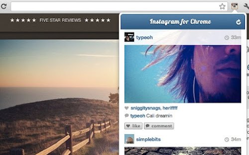 Instagram for Chrome è un nuovo plugin, realizzato dal team 64 Pixels, che ci permette di accedere dal nostro account Instagram da una piccola finestra che porta ad un collegamento nella destra della barra degli indirizzi.