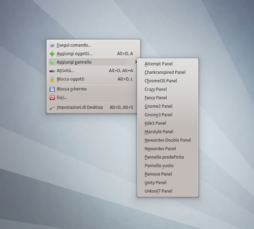 Plasma Panels Collection è un semplice tool che aggiunge al menu contestuale la possibilità di cambiare il pannello di KDE in altri 16 preimpostati, tra i quali troviamo Unity, Gnome Shell, Gnome 2, Mac OSX, Chrome OS, Windows 7, KDE 3.