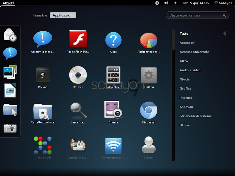 Sabayon Linux 9 - Gnome / panoramica delle attività