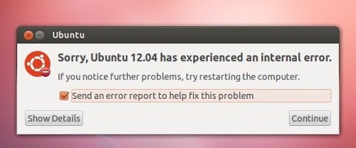 Può capitare mentre utilizziamo Ubuntu 12.04 che durante un aggiornamento, installazione o avvio di un’applicazione, appaia una finestra che ci indica dei problemi con il nostro sistema e di informare gli sviluppatori con i dettagli del problema.