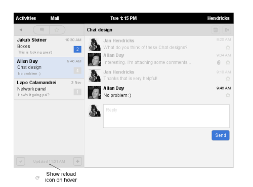Il progetto Mail renderà una più facile consultazione e creazione delle email oltre ad interfacciarsi al meglio con tutto l’ambiente desktop. Oltre all’integrazione con Online Account il nuovo Mail permetterà di interagire con Gnome Contacts per la gestione dei contatti e con Calendar oltre ad integrarsi con le nuove notifiche permettendo quindi di consultare e rispondere alle email direttamente dalla finestra di di dialogo.