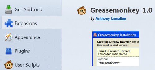 Greasemonkey è sicuramente uno dei più conosciuti ed utilizzati add-on per Firefox. Attraverso Greasemonkey possiamo eseguire codice JavaScript, noto anche come userscripts, nel browser. Gli userscript ci permettono di aggiungere nuove funzionalità non presenti ad esempio neglio add-on oppure personalizzazione di siti web ecc. Tutti gli userscripts sono disponibili attraverso un portale dedicato e denominato userscripts.org.