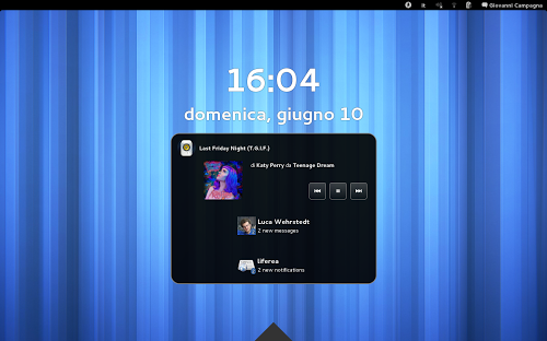 La nuova screen lock permette anche di interagire con il player Rhythmbox offrendo informazioni sul brano in ascolto e se disponibile anche la cover dell’album. Potremo dalla schermata di blocco operare sul player fermando o mettendo in pausa il brano in ascolto oppure passare ad un brano precedente o successivo.