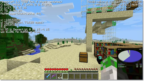 Minecraft 1.3 aggiunge nuovi elementi alla mappa, migliora la gestione del gioco oltre a distribuire automaticamente le texture packs. Altra novità arriva dal server del singolo giocatore che può essere condiviso in una LAN con individuazione dei server.