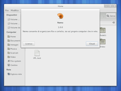 Nemo è un nuovo file manager fork di Nautilus progettato per offrire una maggiore integrazione con Cinnamon portando alcune correzioni. Il nuovo Nemo 1.0 si basa su Nautils 3.4.2 al quale attualmente porta solo alcune modifiche al tema oltre ad alcune correzioni per rendere il file manager più stabile.