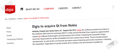 Dopo aver acquistato parte del comparti commerciale di Nokia, Digia ha da poco acquistato anche il progetto Qt.