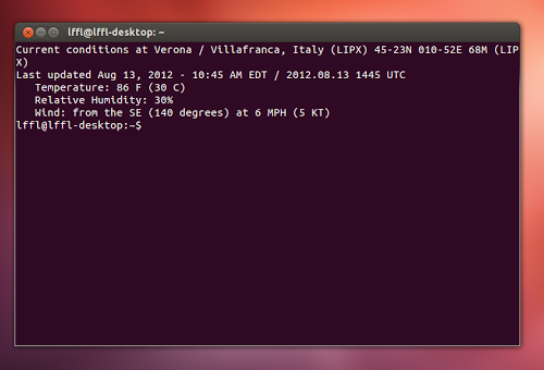 Per avere le condizioni meteo utilizzeremo un semplice tool denominato weather-util presente nei repository ufficiali di Ubuntu e Debian per installarlo basta digitare da terminale: